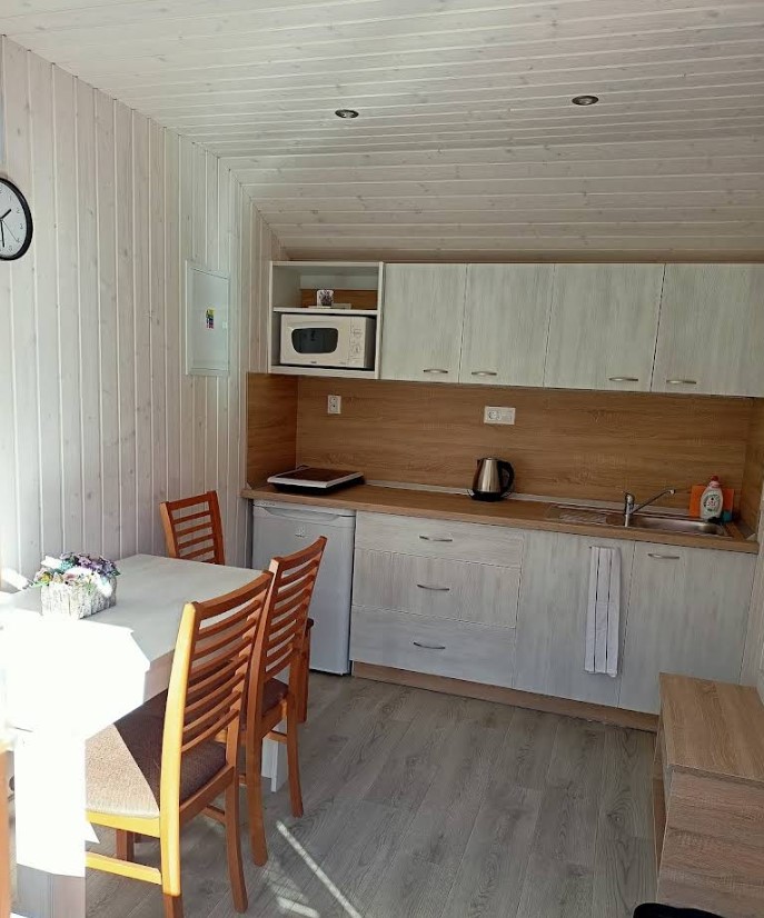 A konyha jól felszerelt (hűtő, mikró, alap eszközök), így az önellátás megoldható.