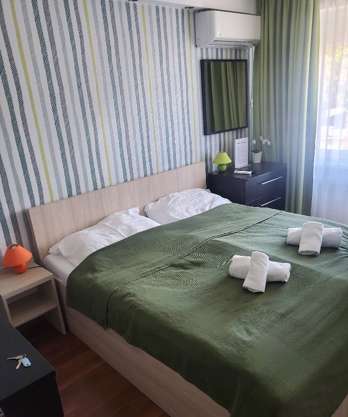Rövid, városközponti balatoni tartózkodásra megfelelő választás. Funkcionális, tiszta szállás, amely elhelyezkedésben erős, szolgáltatásban visszafogott.